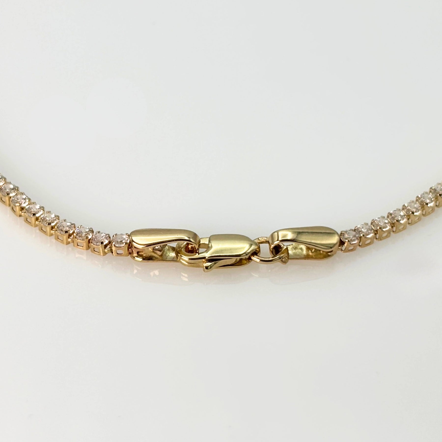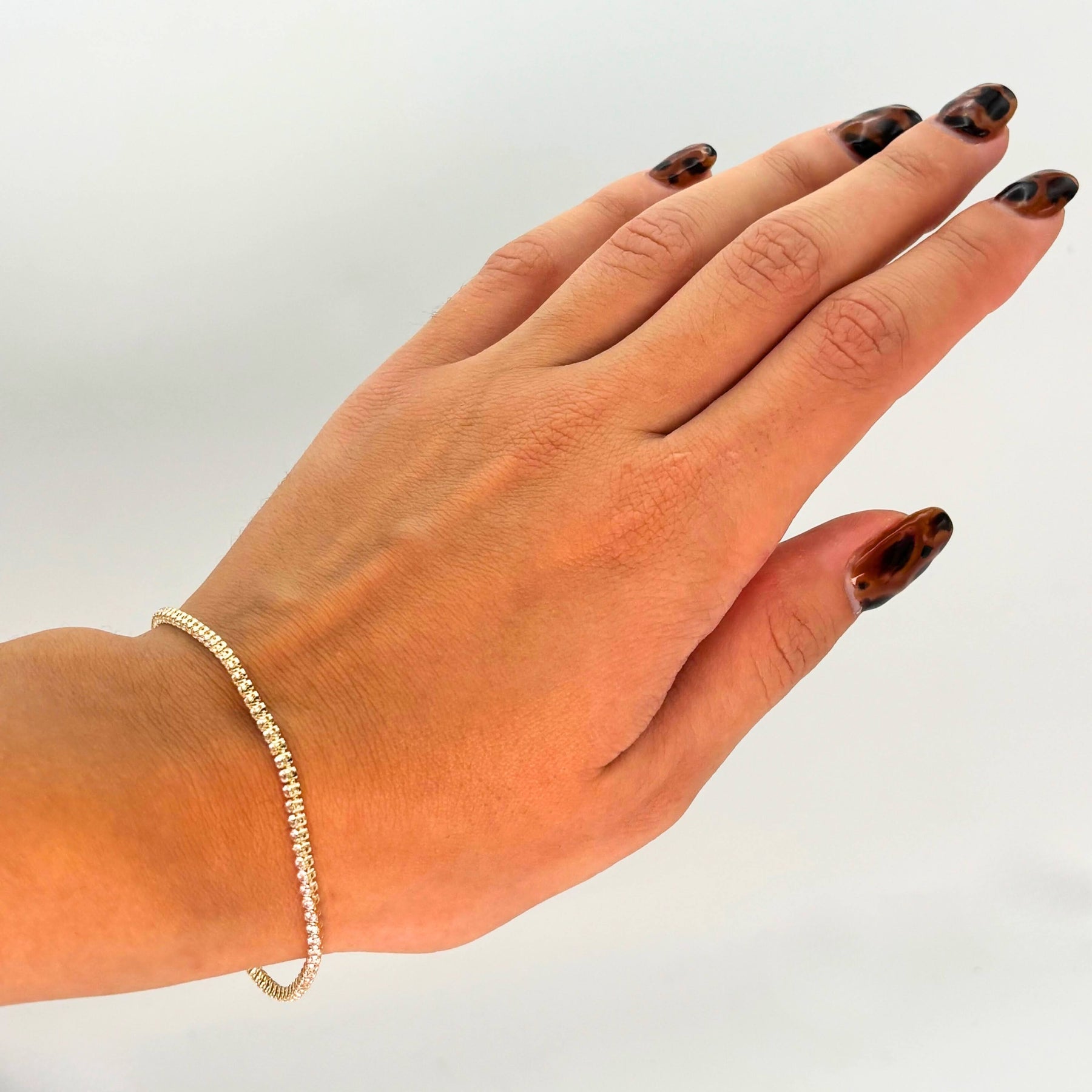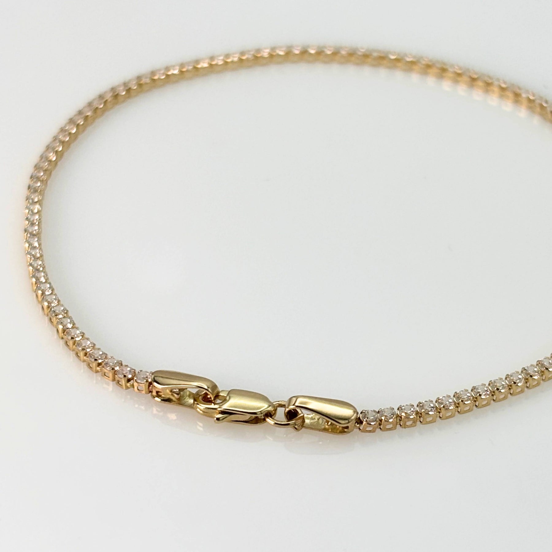 Simbol al echilibrului perfect, brățara tennis din aur de 14K cu zirconiu cubic (CZ) transparent aduce o lumină fină și constantă, care nu are nevoie de ocazii speciale. Este acel tip de bijuterie care se poartă fără efort și se remarcă tocmai prin simplitatea sa.