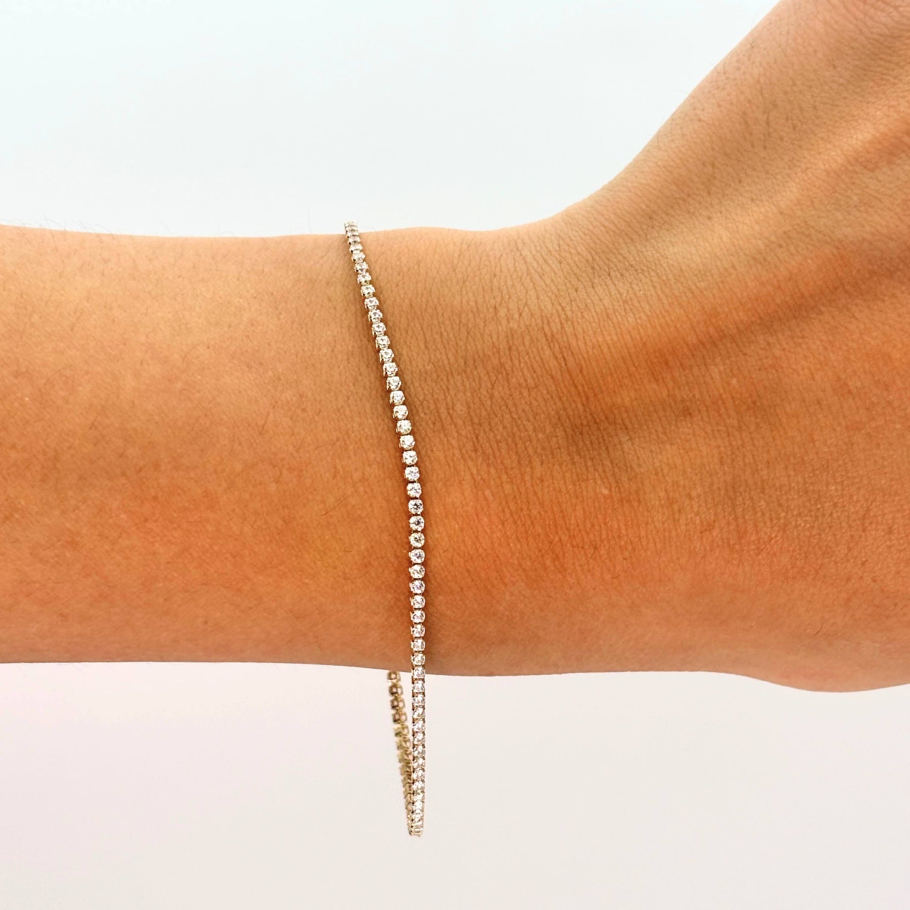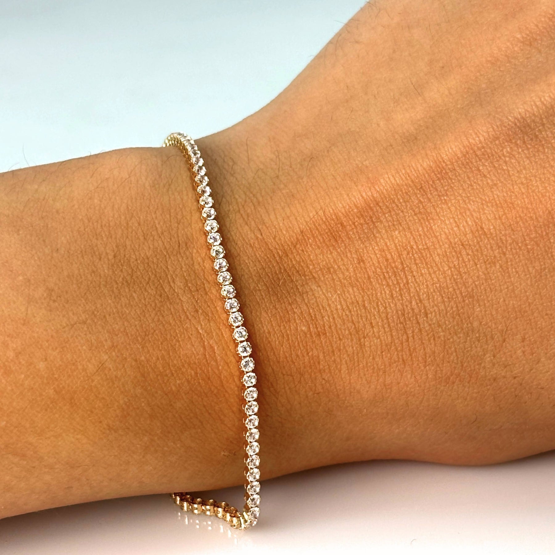 Simbol al echilibrului perfect, brățara tennis din aur de 14K cu zirconiu cubic (CZ) transparent aduce o lumină fină și constantă, care nu are nevoie de ocazii speciale. Este acel tip de bijuterie care se poartă fără efort și se remarcă tocmai prin simplitatea sa.