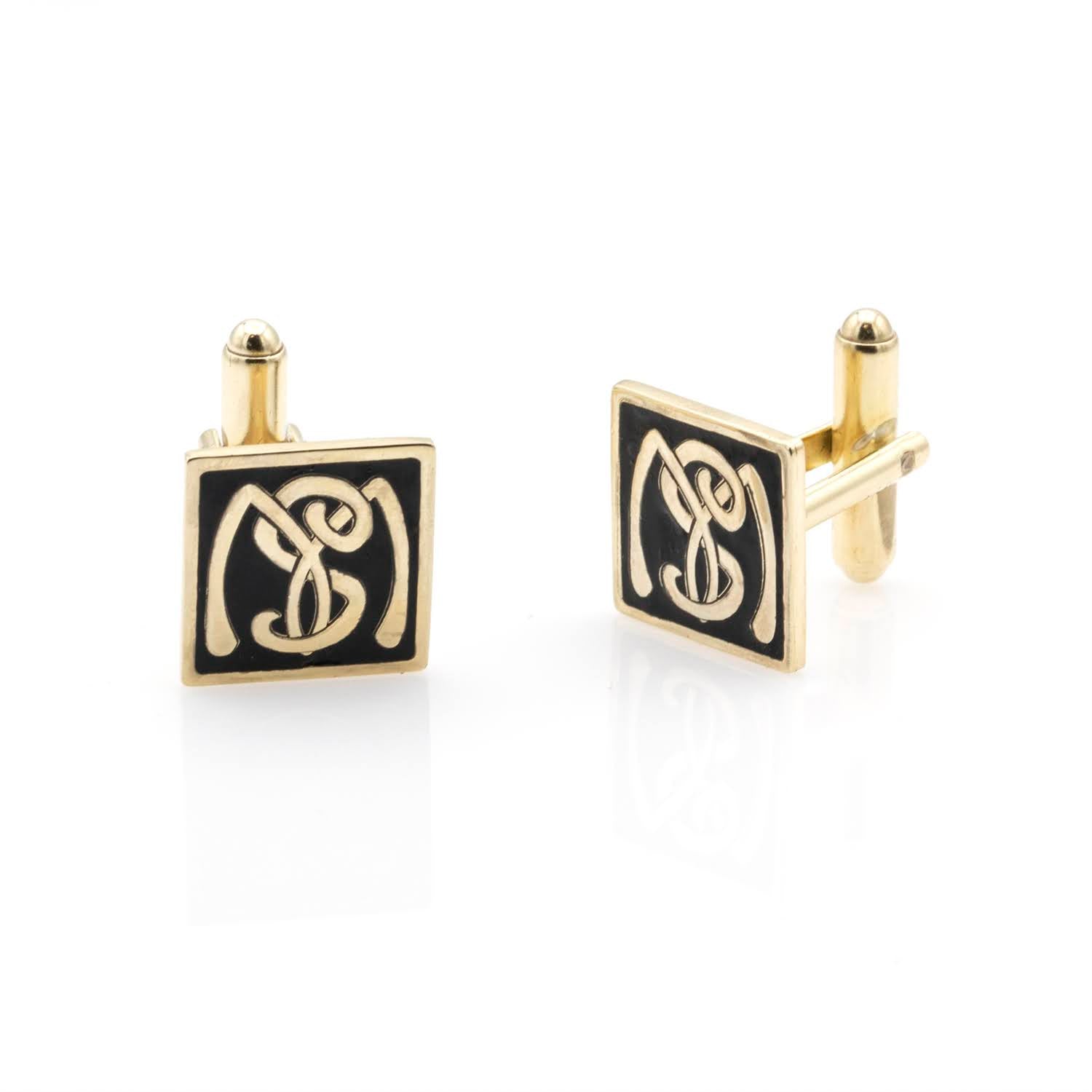Un set de butoni eleganți din aur galben de 14k, personalizați cu monograma unică, gravată pe un fundal negru sofisticat. Designul clasic și rafinat conferă acestor accesorii o notă distinctivă, perfectă pentru a sublinia personalitatea și stilul purtătorului. Ideali pentru evenimente formale sau ocazii speciale, acești butoni devin un simbol al individualității și al gustului desăvârșit. Un cadou deosebit pentru cei care apreciază detaliile personalizate și măiestria artizanală.