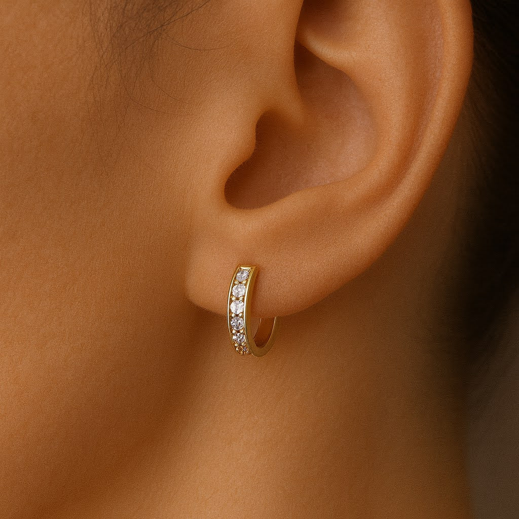 Simplitatea care nu are nevoie de cuvinte. Cerceii din aur de 14K cu zirconiu cubic (CZ) transparent radiază o lumină calmă și curată, potrivită oricărui moment al zilei. O eleganță discretă, care se face remarcată prin finețea proporțiilor.