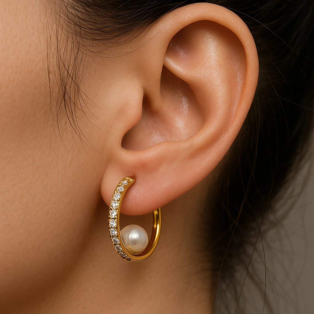 O armonie între lumina rece a zirconiului cubic (CZ) și căldura delicată a perlei. Cerceii din aur de 14K combină strălucirea subtilă cu o eleganță atemporală, creând o piesă care emană rafinament fără efort.