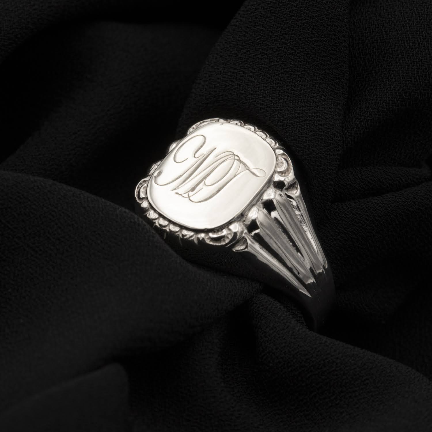 Un ghiul sofisticat realizat din argint, cu detalii clasice care emană rafinament și personalitate. Placa centrală este gravată cu inițiale elegante, simbolizând unicitatea și tradiția. Marginile atent sculptate adaugă o notă de finețe, iar designul robust completează un stil atemporal. Ideal pentru cei care apreciază accesoriile personalizate, acest ghiul este mai mult decât un inel – este o expresie a identității.