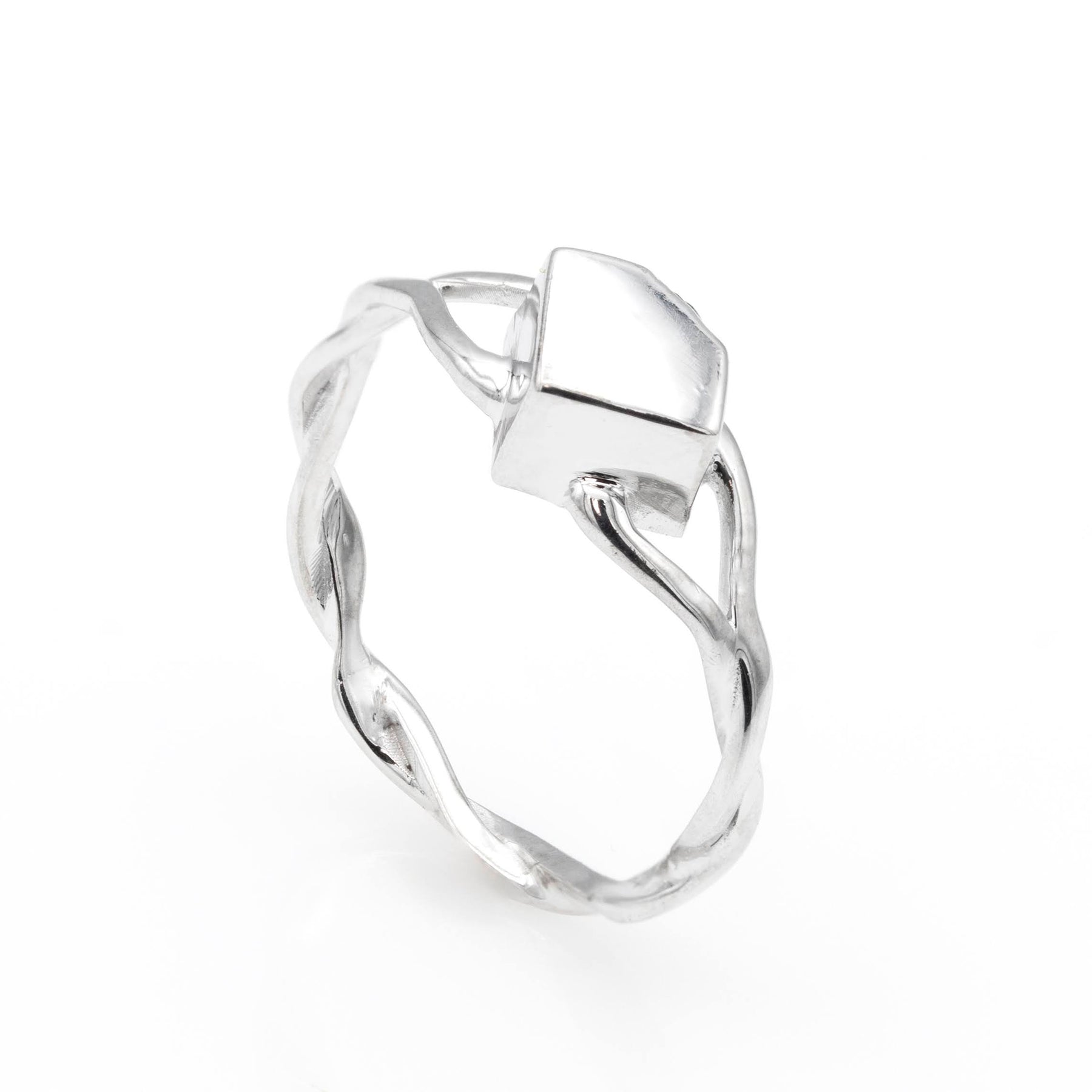 Un inel minimalist și modern, cu un design ce combină linii răsucite pentru un aspect organic și fluid. Realizat din argint, piesa are o montură subtilă, ce atrage privirea prin geometria sa distinctă. Ideal pentru cei care apreciază bijuteriile neconvenționale și discrete, acest inel poate fi purtat zilnic sau ca un accesoriu special pentru a adăuga un strop de unicitate oricărei ținute. O alegere perfectă pentru iubitorii stilului contemporan și al detaliilor delicate.