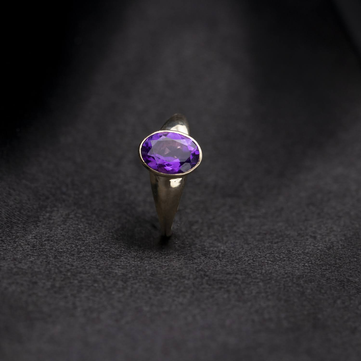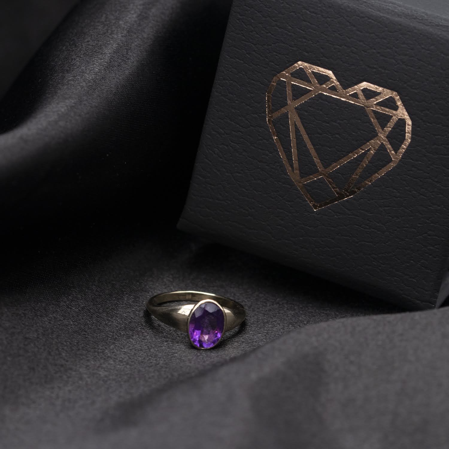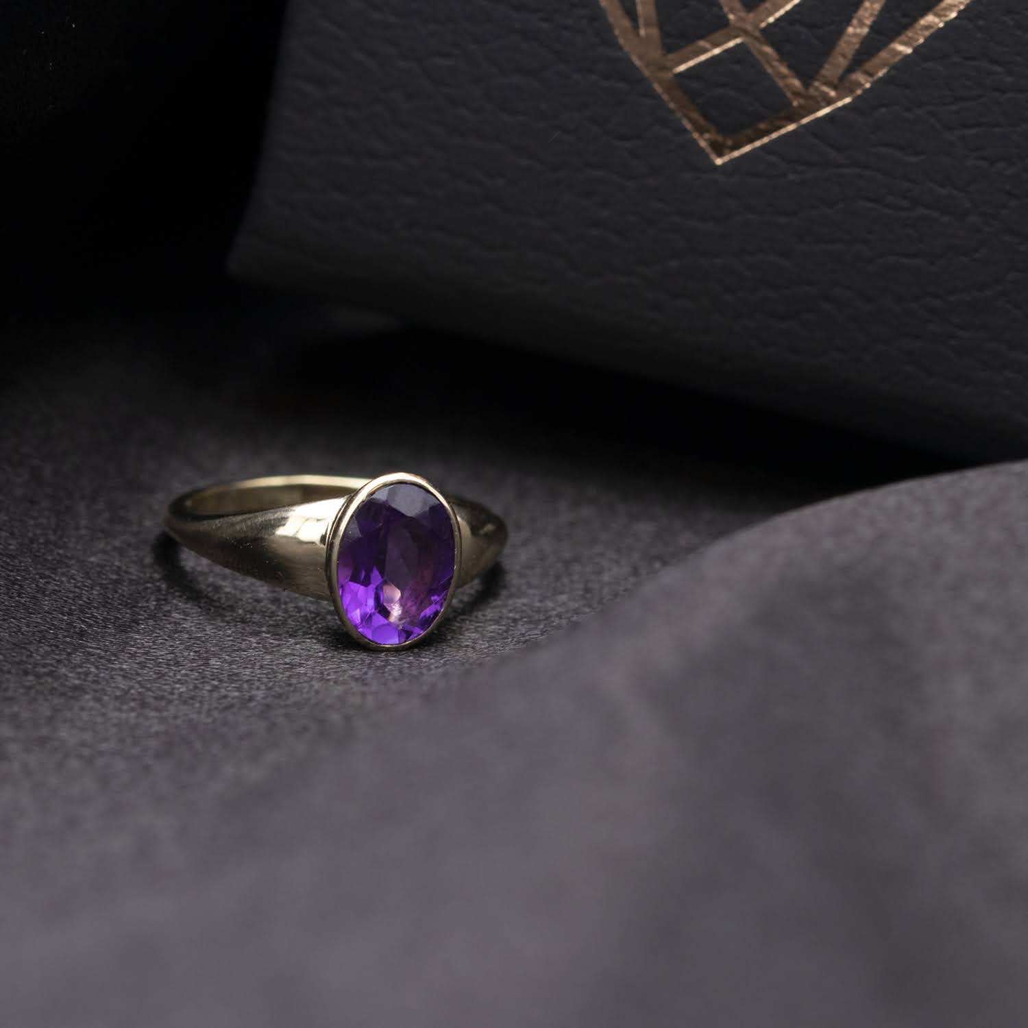 Inelul cu ametist, montat pe aur de 14k, radiază o eleganță subtilă și o frumusețe regală. Ametistul violet, cunoscut pentru claritatea sa și nuanțele sale vibrante, aduce o notă de rafinament și mister. Designul clasic al inelului pune în valoare piatra prețioasă, transformând această bijuterie într-un simbol al eleganței atemporale. Perfect pentru momente speciale sau pentru a adăuga un accent sofisticat unei ținute de zi cu zi.