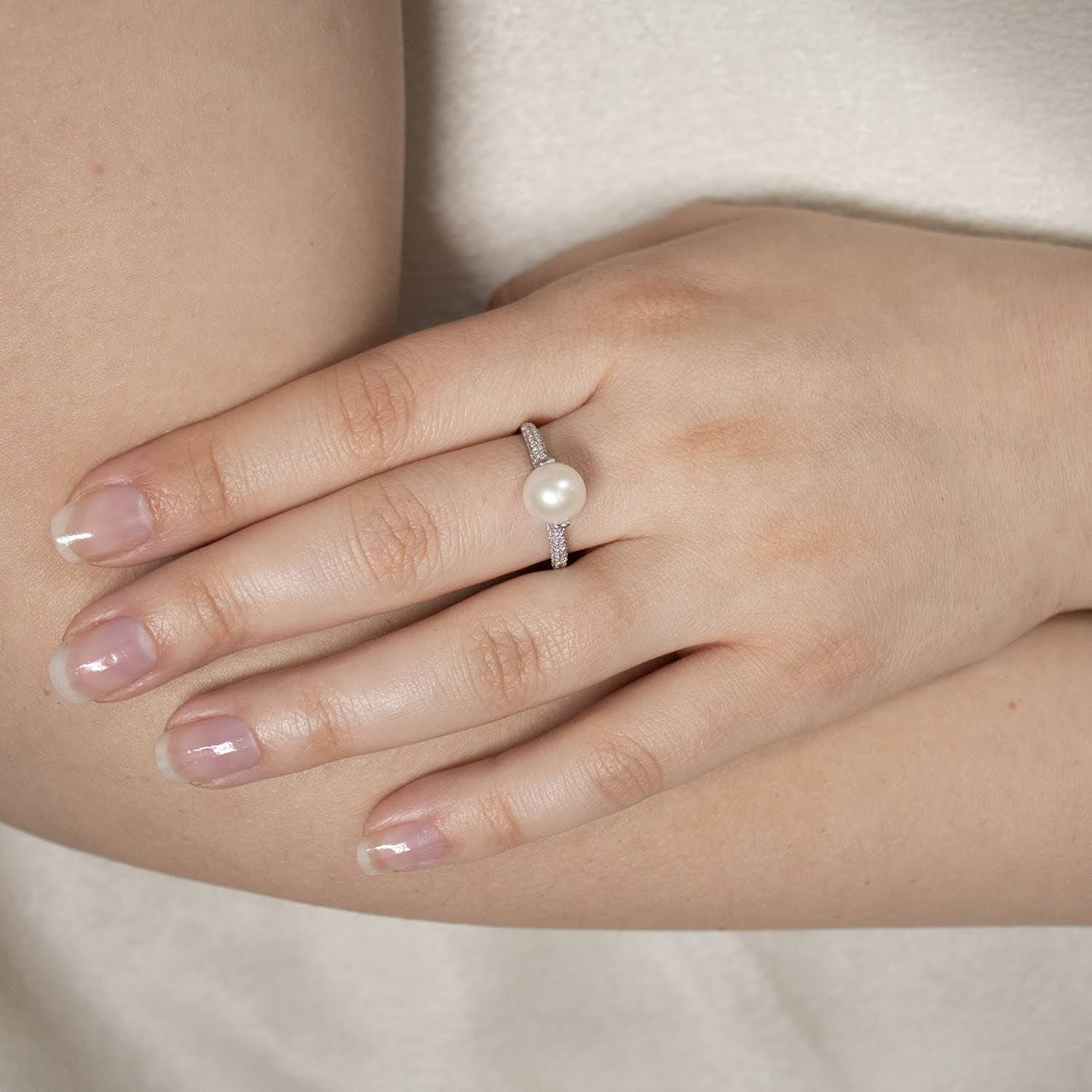 Un inel sofisticat și rafinat, realizat din aur alb, care pune în valoare o perlă naturală strălucitoare, înconjurată de detalii pavate cu diamante. Designul elegant și liniile curate transformă acest model într-un simbol al purității și al grației. Perfect pentru ocazii speciale sau pentru a adăuga o notă de eleganță unei ținute, acest inel impresionează prin echilibrul său între simplitate și lux subtil. Ideal ca dar memorabil sau accesoriu versatil în colecția personală.