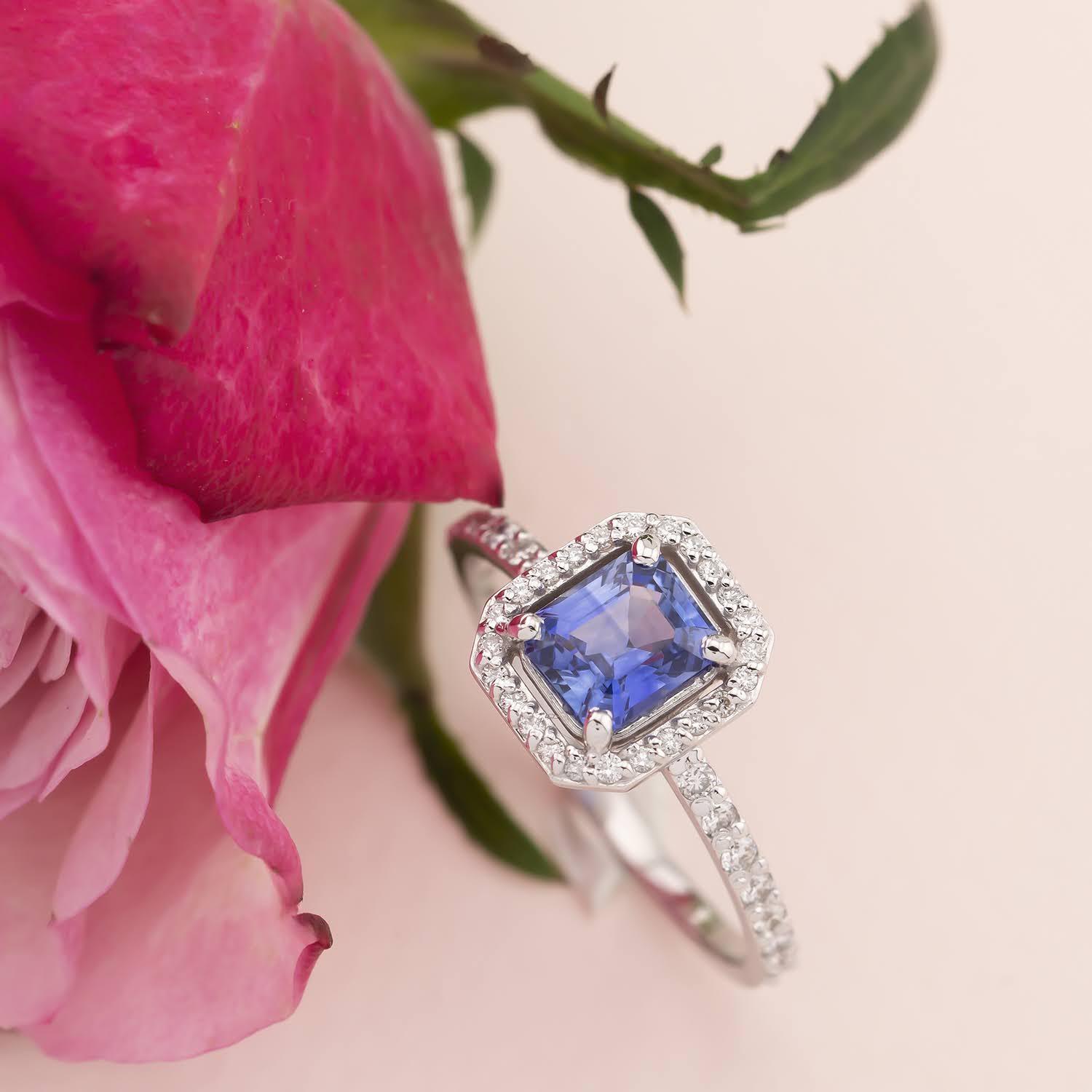 Un design clasic și sofisticat, acest inel pune în valoare un safir albastru impresionant, încadrat de un halo strălucitor de diamante. Montura delicată din aur alb și banda decorată cu diamante adaugă un plus de eleganță și rafinament. Perfect pentru momente speciale sau ca simbol al unei legături unice, acest inel combină armonios strălucirea diamantelor cu profunzimea safirului, creând o piesă atemporală și plină de farmec. O alegere ideală pentru cei care apreciază bijuteriile rafinate.