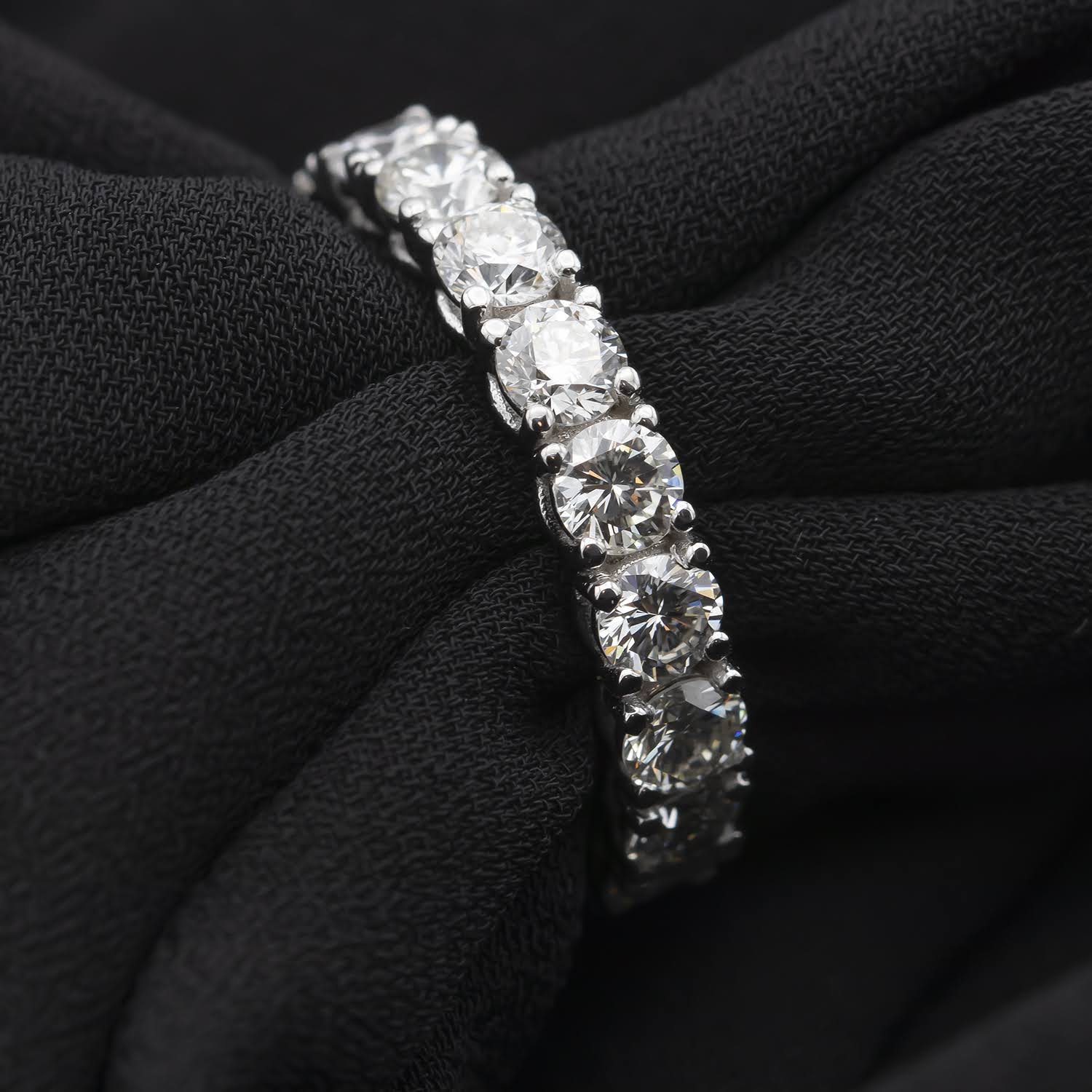 Un inel eternity clasic și sofisticat, conceput pentru a simboliza iubirea eternă. Realizat din aur alb, acest inel este decorat cu diamante strălucitoare dispuse în jurul întregii benzi, fiecare piatră fiind atent montată pentru a reflecta lumina în mod spectaculos. Designul său elegant și atemporal îl face perfect pentru a celebra momente speciale, precum aniversări sau angajamente, sau pentru a adăuga o notă de lux colecției tale de bijuterii. O piesă ce impresionează prin rafinament și semnificație.