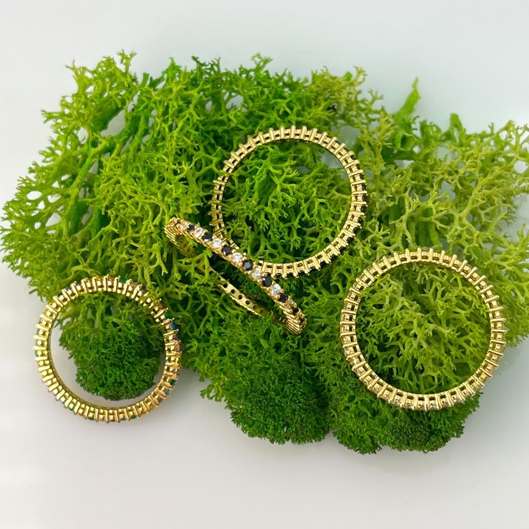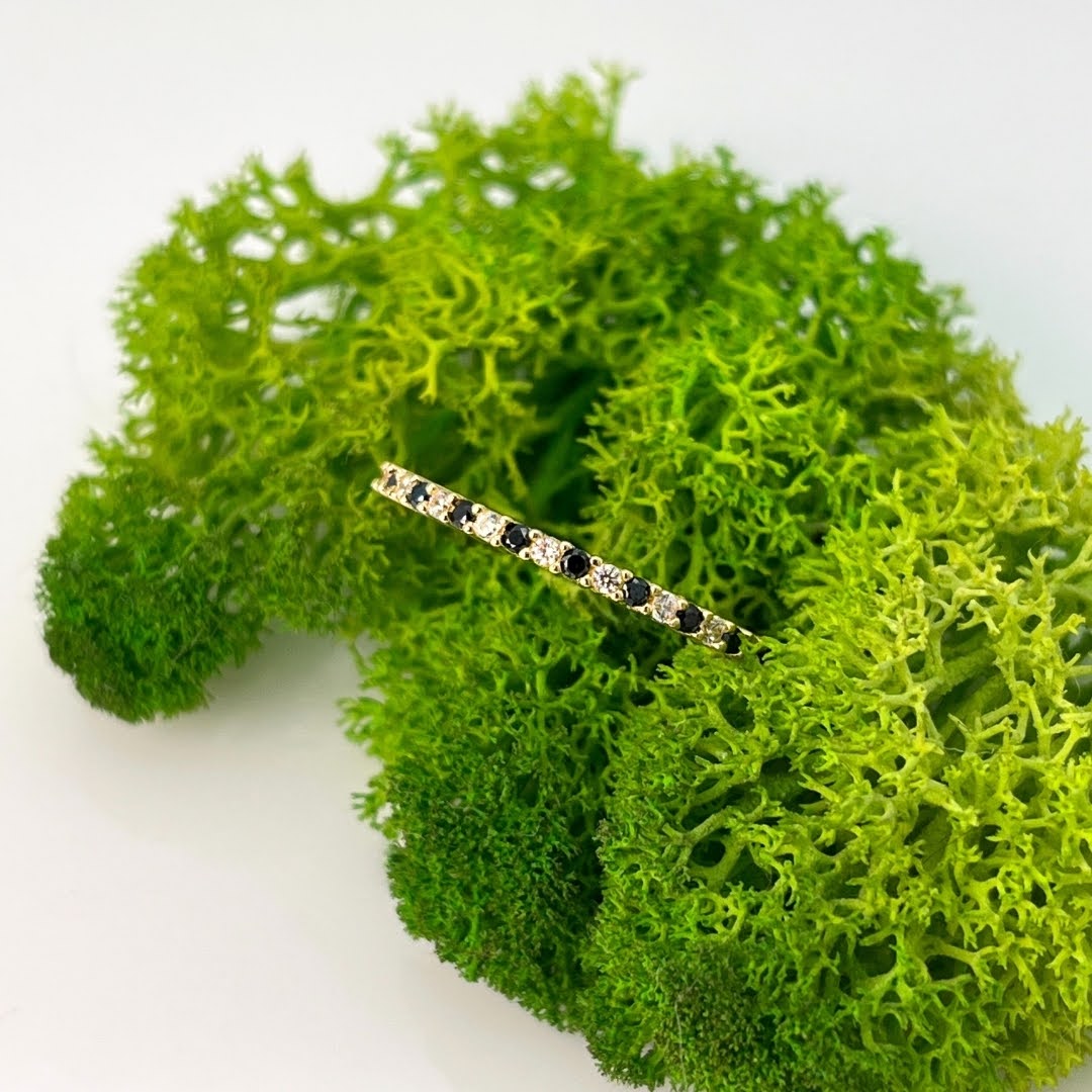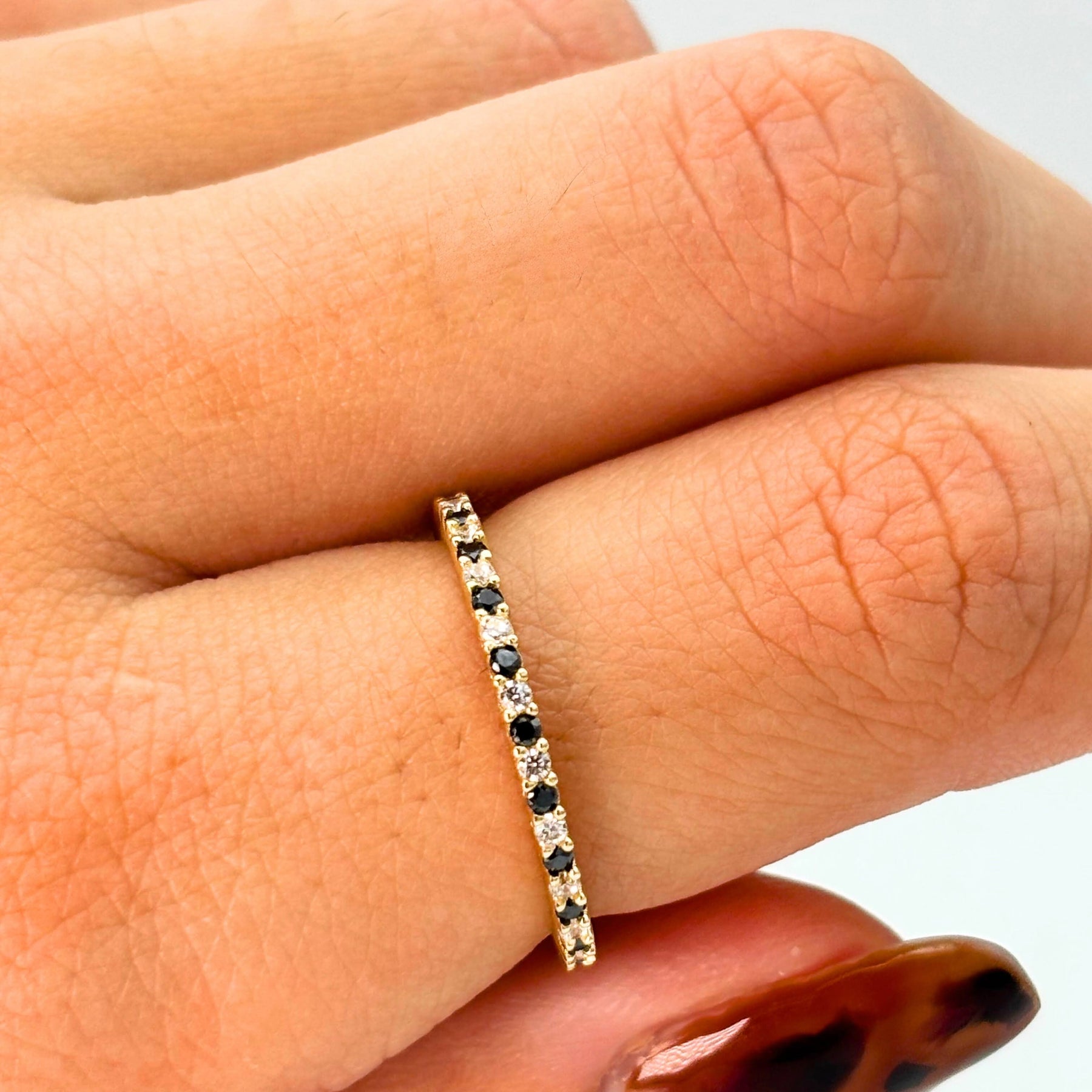 Un contrast rafinat, puternic și misterios. Inelul Eternity din aur de 14K cu zirconiu cubic (CZ) negre si albe este expresia eleganței moderne — o piesă subtilă, dar cu personalitate.