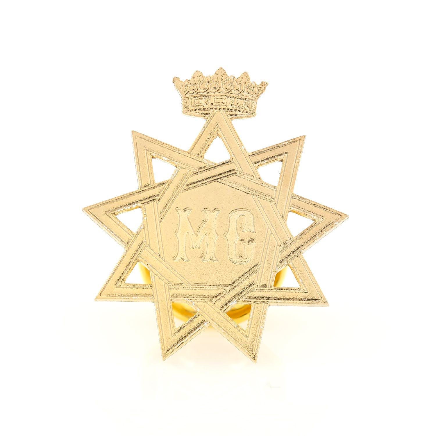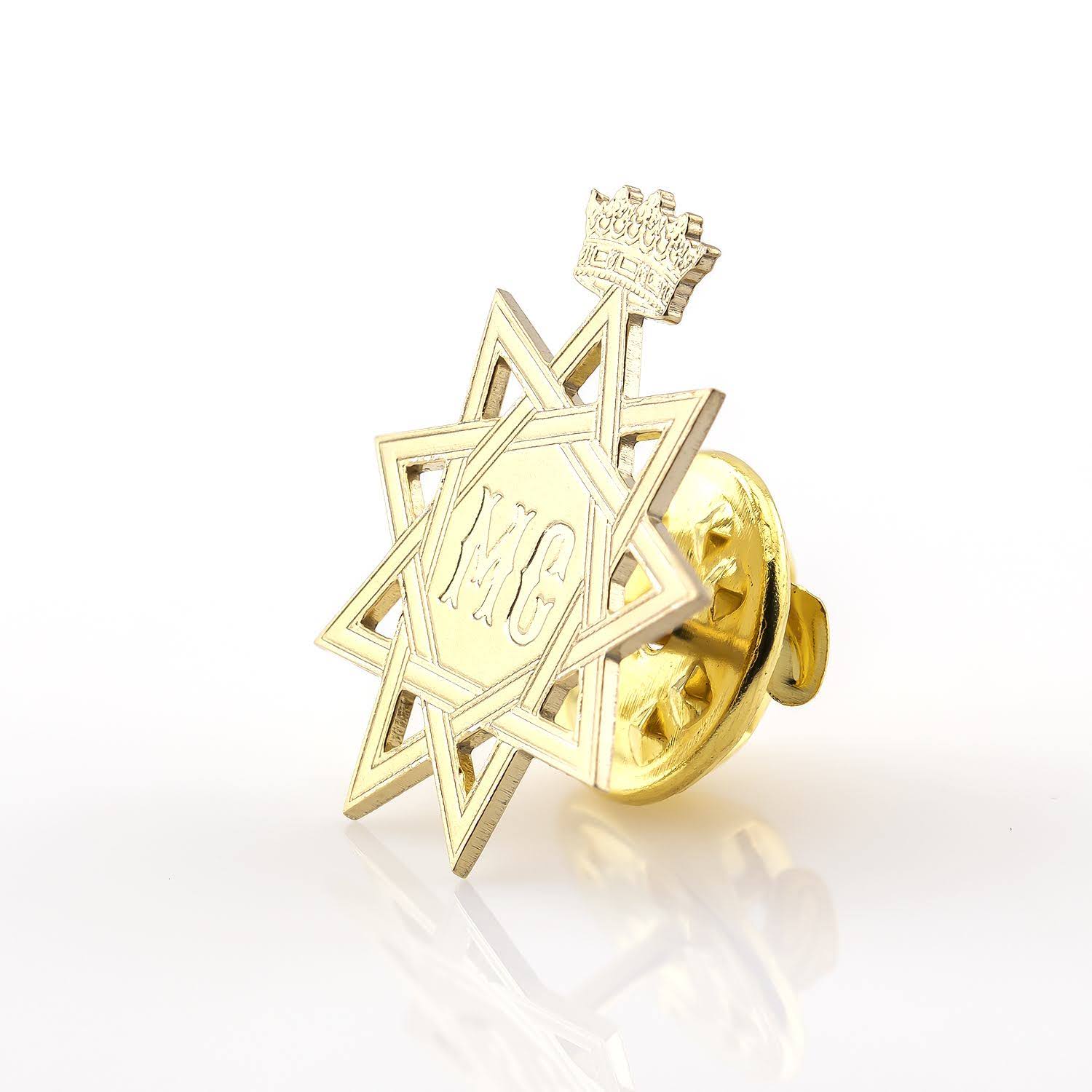 Un simbol unic și personal, acest pin gravat a fost realizat din aur, reflectând o semnificație specială pentru cel care l-a comandat. Designul geometric cu stea și coroana în partea superioară subliniază unicitatea piesei, în timp ce inițialele „MC” gravate adaugă o notă distinctă și personalizată. Mai mult decât un accesoriu, acest pin reprezintă o expresie a identității și a valorilor celui care îl poartă.