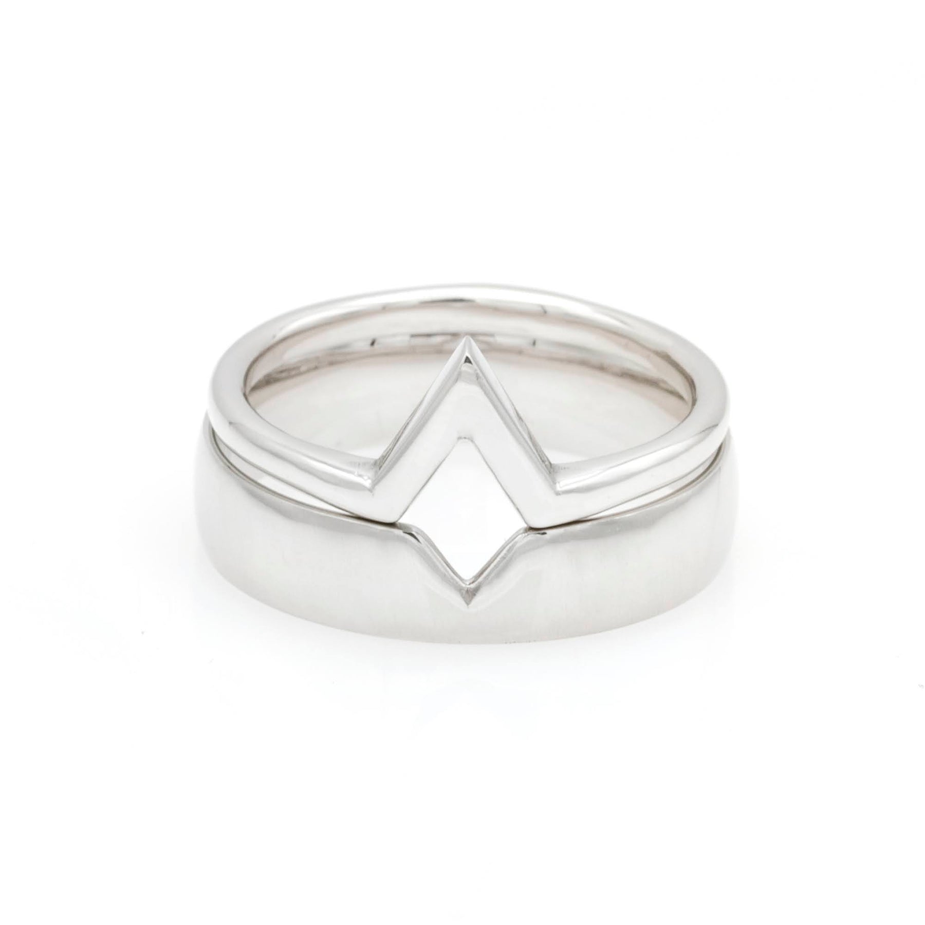 Verighetele cu design în formă de V sunt o alegere modernă și simbolică pentru cuplurile care doresc o interpretare unică a uniunii lor. Realizate din aur alb, acestea aduc un aer contemporan datorită liniilor geometrice curate și a formei distinctive.